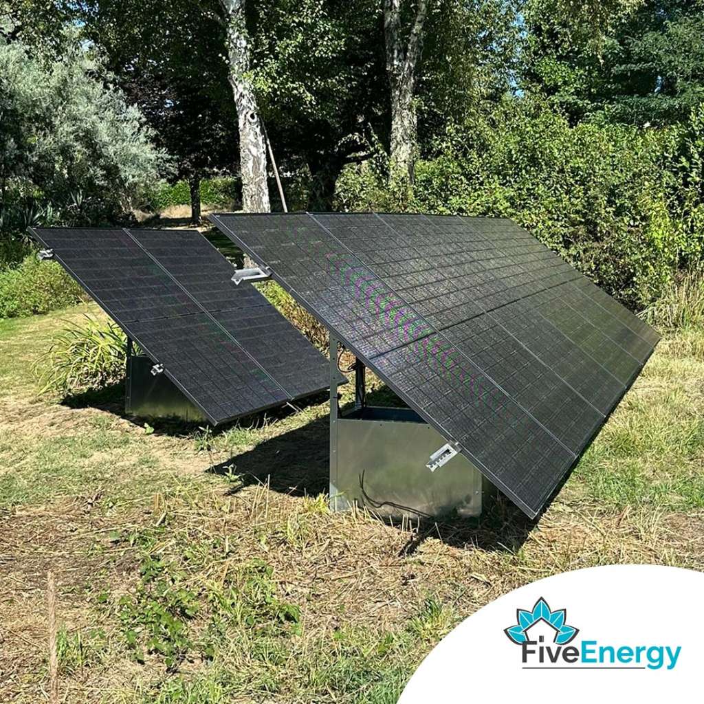Plutôt que la toiture orientée Est/Ouest, les panneaux ont été installés au sol, sur un terrain approprié, permettant de les orienter plein Sud et d’assurer un rendement énergétique optimal.